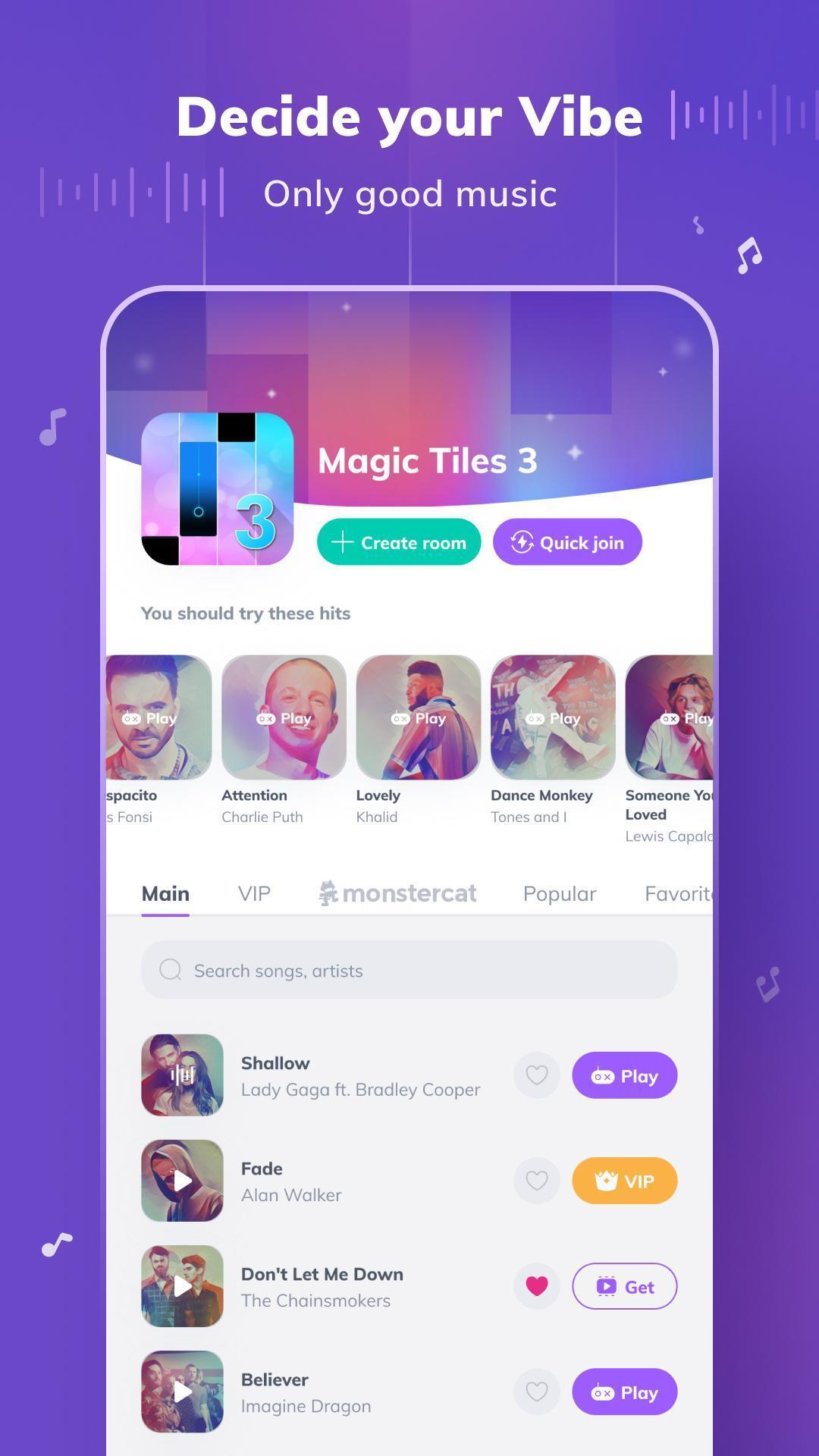Enjoy in many songs, and play them in different ways. Play music in the different games.